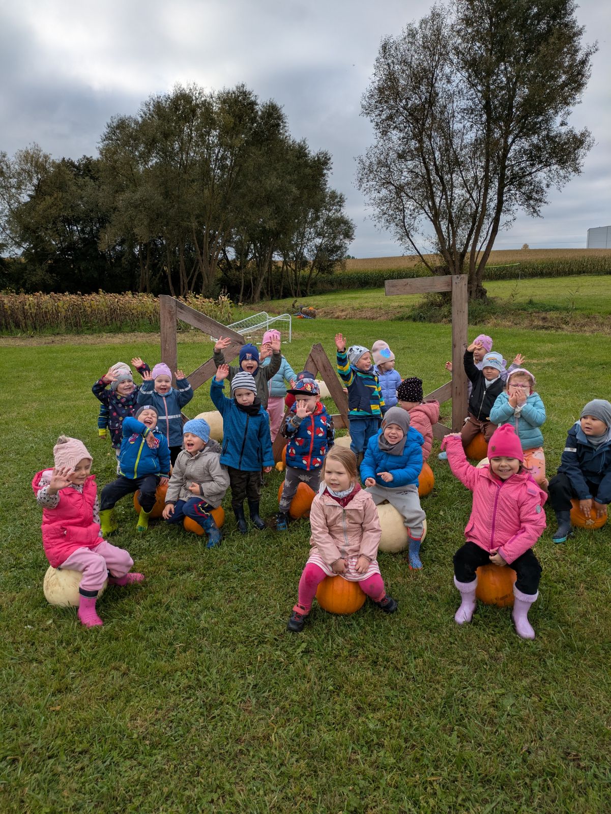 „Niezapominajki” i „Róże” wybrały się na wycieczkę do Zajączkowa, aby odwiedzić Dyniowy Raj. Dzieci poznały różne odmiany dyń, pokonały dyniowy tor przeszkód. Wiele radości dostarczyło dzieciom poszukiwanie ukrytych przedmiotów w