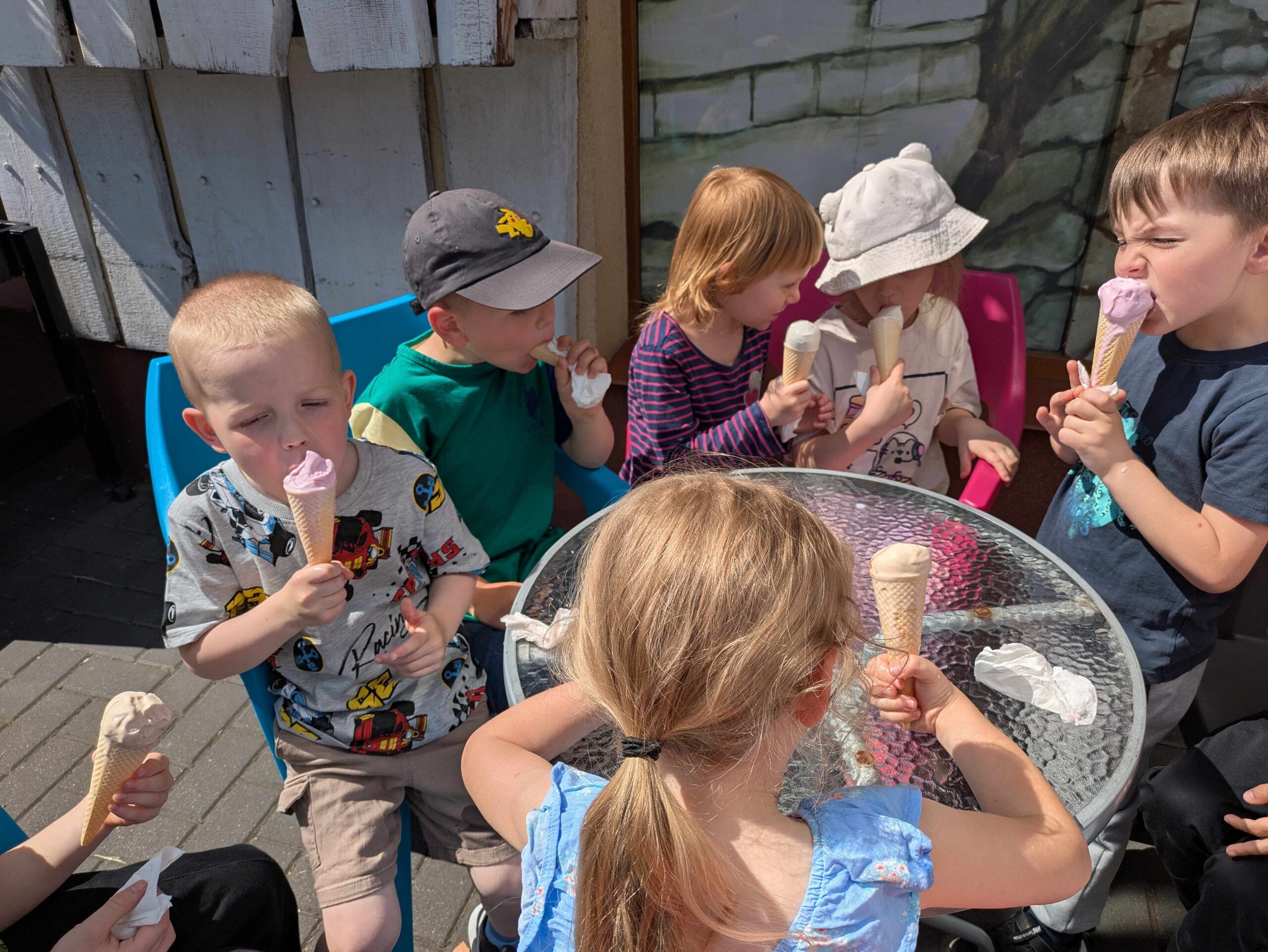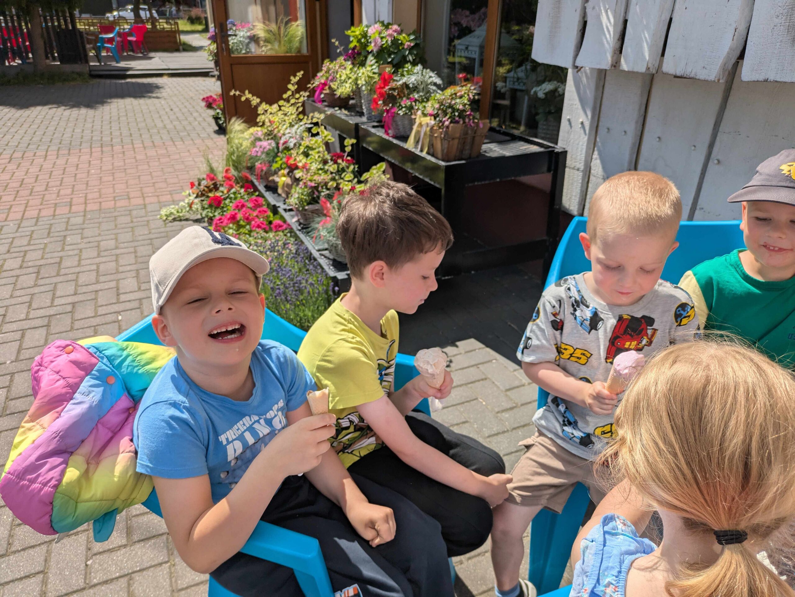 Stokrotki wybrały się na lody. Każde dziecko wybrało swój ulubiony smak zimnych smakołyków. Po pysznych lodach Stokrotki udały się na pobliski plac zabaw. Po powrocie do przedszkola, w grupie odbyła się mała uroczystość. Panie wychowawczynie wręczyły dzieciom pamiątkowe dyplomy na zakończenie roku oraz drobne słodkości.