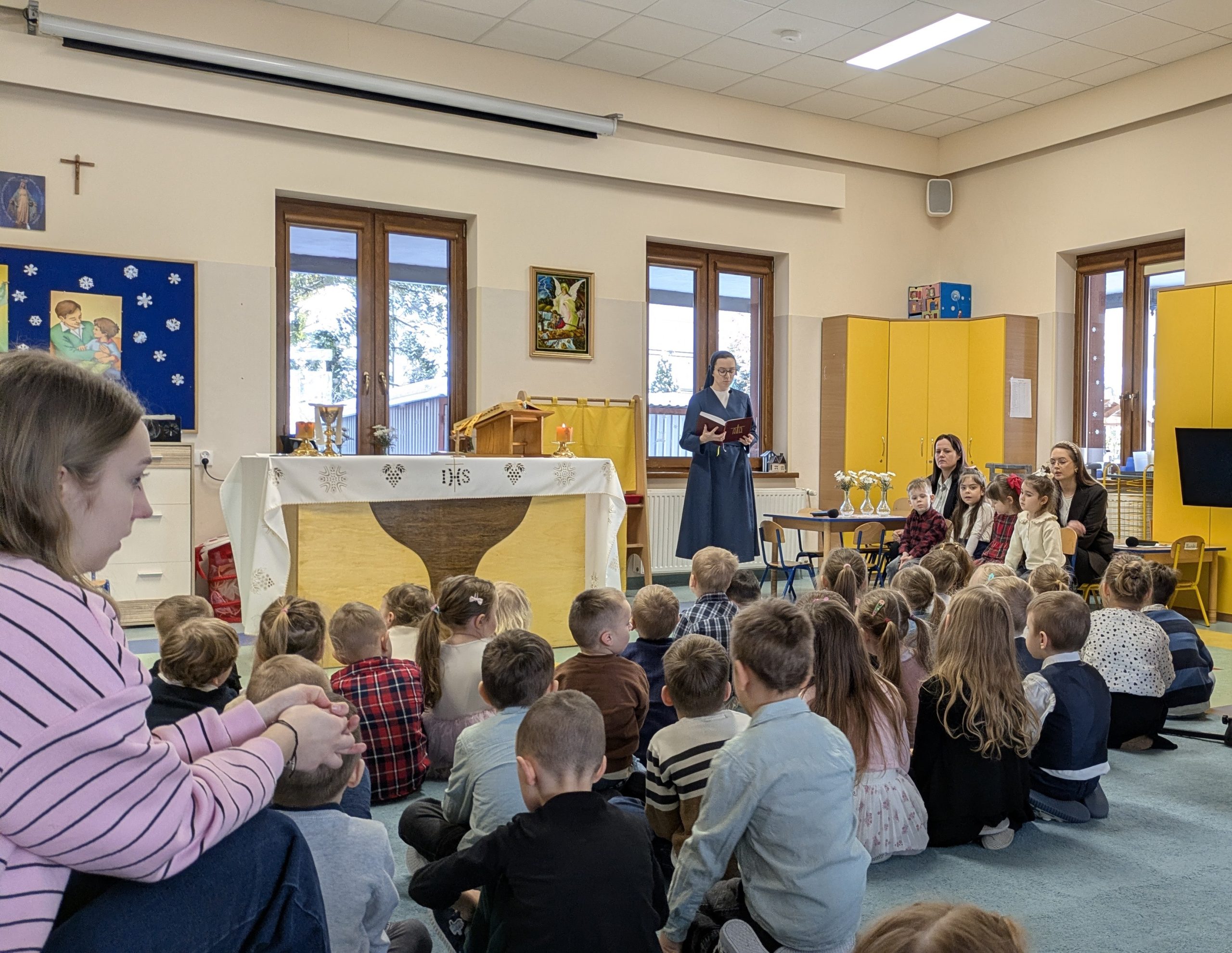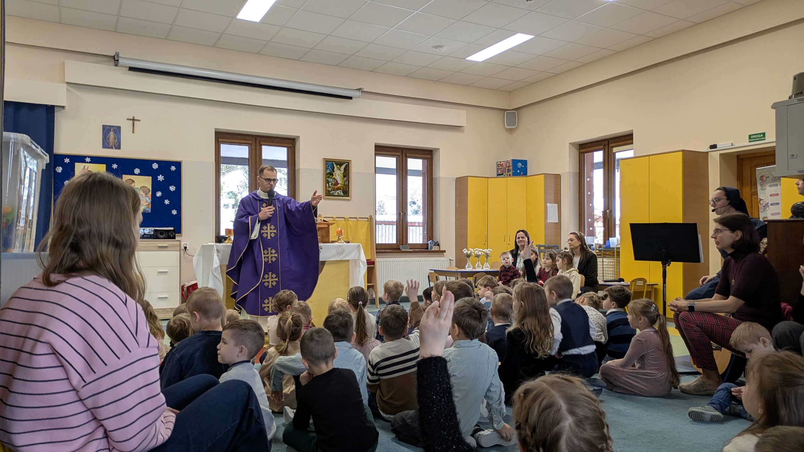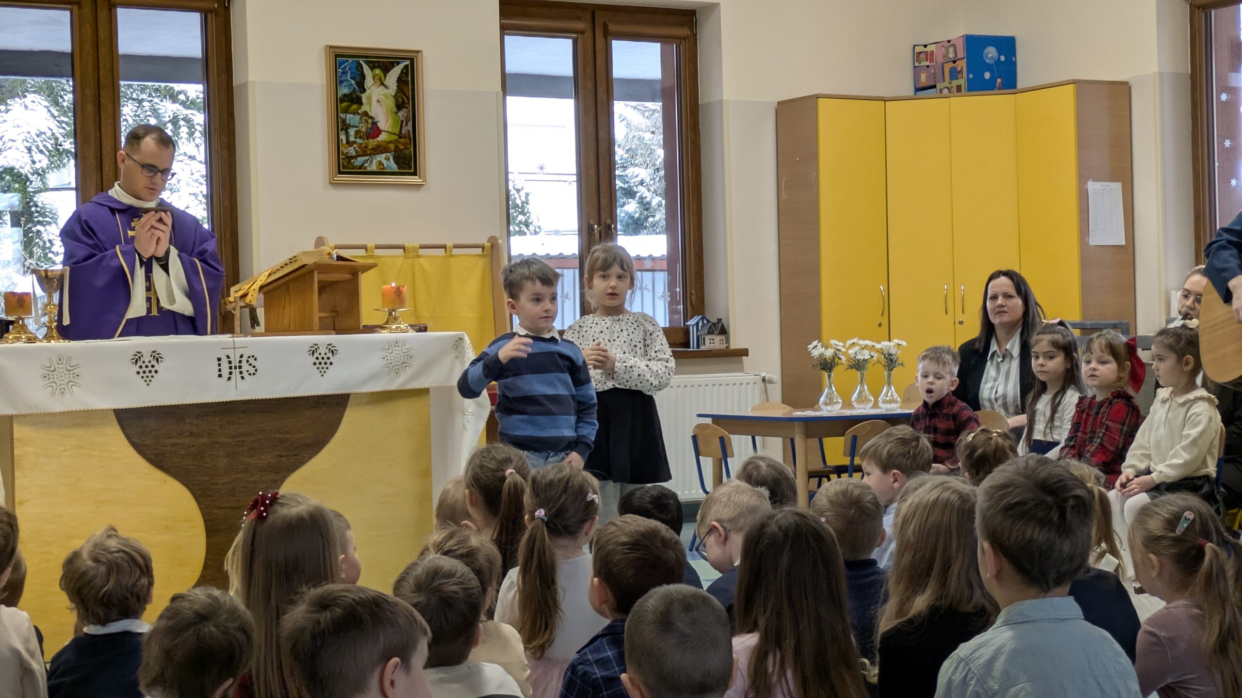 W środę popielcową odbyła się w naszym przedszkolu Msza święta na rozpoczęcie Wielkiego Postu, z tradycją posypania głów popiołem.